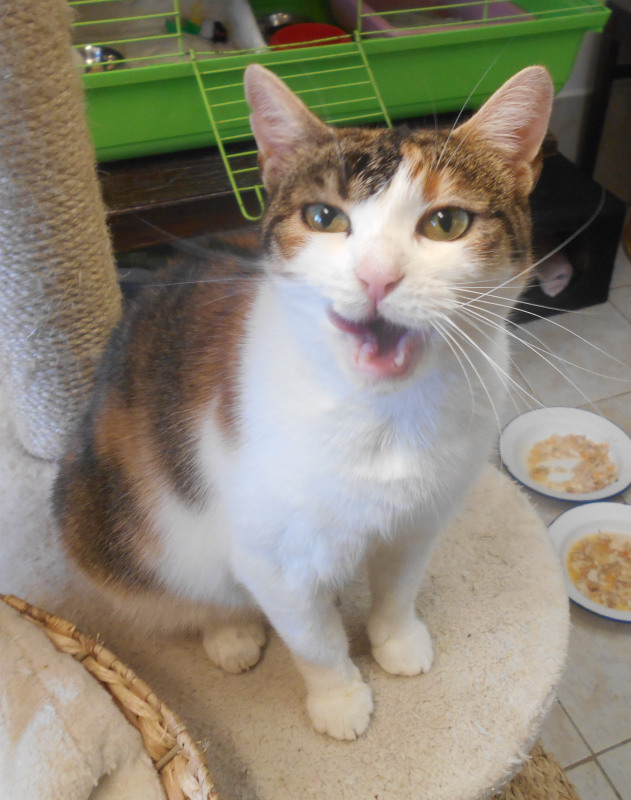 Mazlivá, temperamentní 3barevná 1,5-2letá kráska Maruška hledá domov v domku s bezpečným výběhem. Chce být jedinou kočičkou v domácnosti - typická 3barevka, mazlivá vůči lidem a nenechá si nic líbit od koček. S vlídným hovorem a s chválou Maruška zjihne a je nejmilejší kočička. Ráda a dobře baští všechno dobré pro kočičky. Dostala se k nám se svými 3 koťátky. Koťátka už našla své domovy a teď ho hledá i mamča – je kastrovaná, očkovaná, odčervená. Má malý handicap, který ji vůbec neomezuje, nevadí jí – kratší ocásek. Marušku můžete mít za příspěvek na péči.