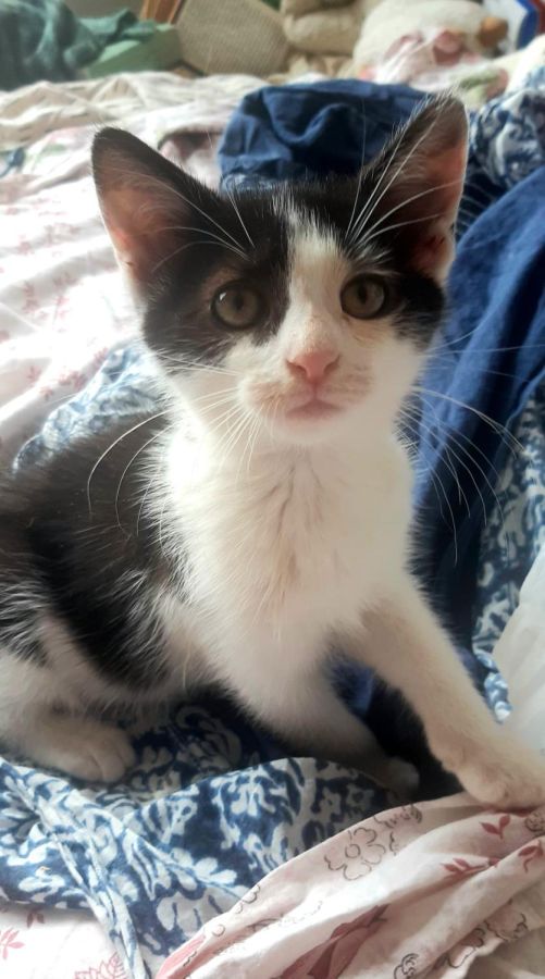 Bíločerný 2,5-3měsíční milý, veselý kocourek, zvyklý na lidi i kočky, hledá domov. Říkáme mu Marek. Rád by měl kočičí společnost pro hru a aby nebyl dlouho sám doma. Nebo rodinu, kde by měli čas a chuť se kocourkovi věnovat. Je ještě maličký. Marek je očkovaný, odčervený a můžete ho mít za příspěvek na péči. Kontakt: Petra Soběslavská mob. 603 225 948