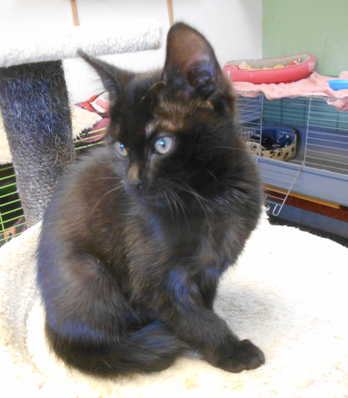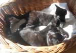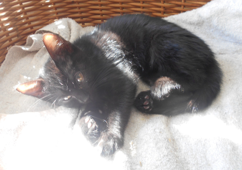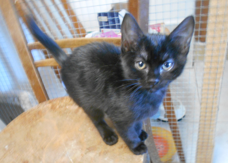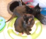 Čilá, hravá černá Čertinka 2,5-3měsíční hledá domov, stejně jako její bráška Čertíček. Oba jsou zvyklí na společné hry, kočkování. Práce s míčkem, s myškou za 1. Hrají si, dovádějí a pak společně usnou. Jsou ještě malá koťátka, mohou jít do nového domova spolu, nebo každý nejraději ke koťátku, do čilé kočičí společnosti. Nebo do rodiny, kde budou mít čas se koťátku věnovat. Pro hru a aby nebylo malé kotě dlouho samo doma. Čertinka je trošku klidnější než její bráška. Jsou očkovaní, odčervení a můžete každého mít za příspěvek na péči. Kontakt: Petra Soběslavská mob.603 225 948