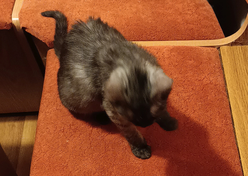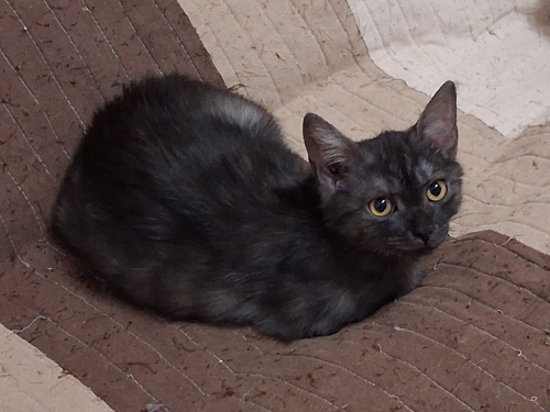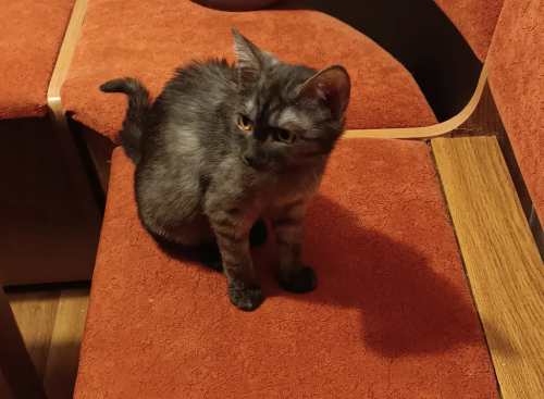 Cassie je asi 4,5 měsíce staré kotě. Je to takový dráček schovaný v kočičím těle. Hravá, zvídavá, s kočičími kamarády naprosto v pohodě. Bohužel k lidem si úplně cestu ještě nenašla. Všude je sice sleduje, pozoruje, co člověk dělá, chodí za ním, z ruky si vezme dobrůtku, ale jakmile jí člověk chce chytit, utíká. Bude to chtít dát jí ještě trochu času. Je očkovaná, do bytu a dobrý by byl i kočičí kamarád. Kontakt: Jana Vnuková mob. 603 569 747