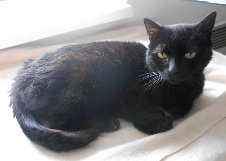 Černá kočka – kocour nalezená(ý) ve vystěhovaném bytě v ulici Moulíkova 2 – naproti Smíchovskému nádraží. Číča (kočičák) vypadá dobře, velká (ý), dobře živená(ý). Nevíme, jestli v bytě bydlel(a), nebo tam jen vlezl(a) během stěhování. V současnosti je v útulku Sdružení na ochranu zvířat v krajní nouzi, Praha 5. Kontakt mob.603 225 948. Fotky jsou ilustrativní