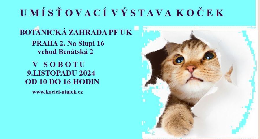 Naše tradiční výstava v Botanické, tentokrát 9.listopadu 2024. Srdečně zveme zájemce o osvojení kočiček i příznivce, kteří se přijdou podívat a podpoří útulky, pomohou s péčí o opuštěné kočky. Za všechny zúčastněné útulky Sdružení na ochranu zvířat v krajní nouzi
