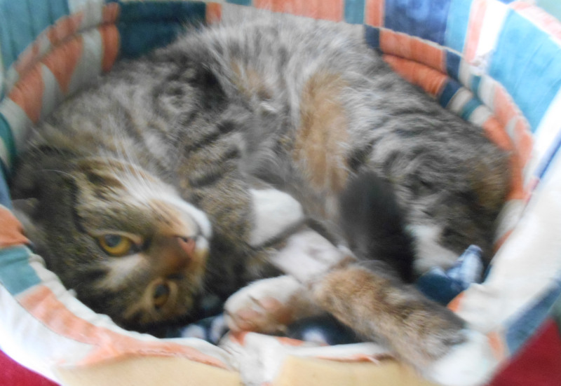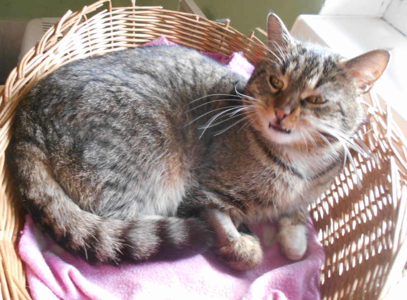 Mourovaný kocourek s bílými tlapičkami asi 1,5-2letý hodný, mazlivý, byl nalezený na stavbě u Metra Vltavská 17.3.. Je milý a mazlivý, má pacičky ztvrdlé, tedy je zvyklý běhat venku. Říkáme mu James. Je v útulku Sdružení na ochranu zvířat v krajní nouzi, na Praze 5. Kontakt Petra Soběslavská mob. 603 225 948