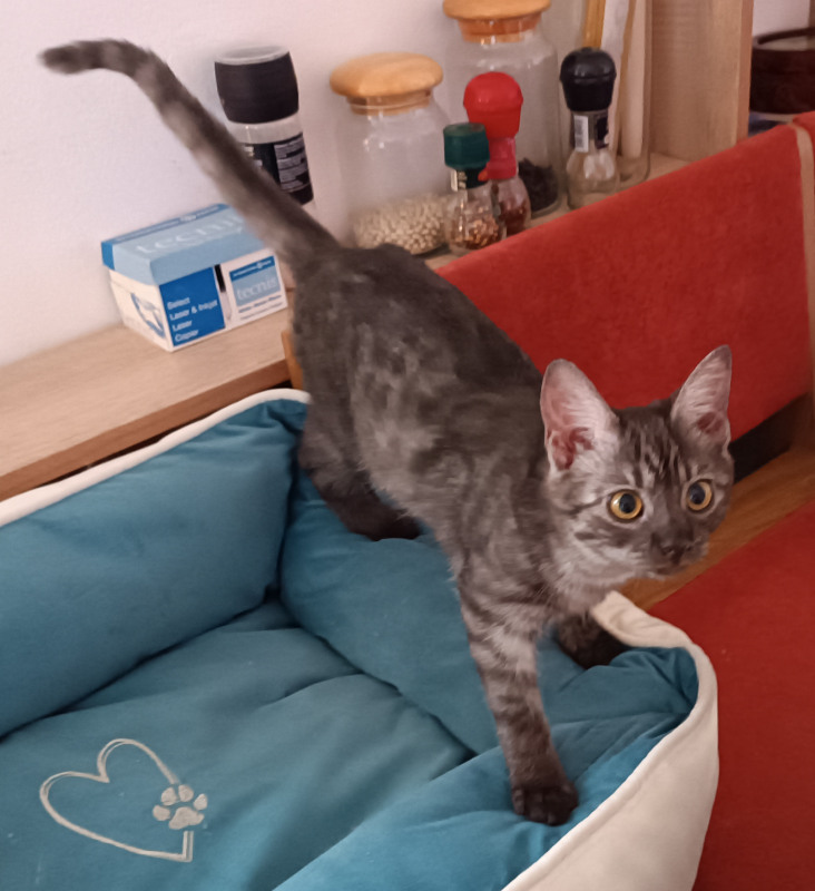 Heyde je krásná, tmavě šedá kočičí slečna. Jsou jí asi 4 měsíce, je velice čilá a hravá. Do nového domova by mohla jít se svojí kamarádkou Lili nebo někam, kde již zvířátko mají. Není vhodná jako jedináček. Je odčervená, očkovaná. Heyde můžete mít za příspěvek na péči. Kontakt: Jana Vnuková mob. 603 569 747