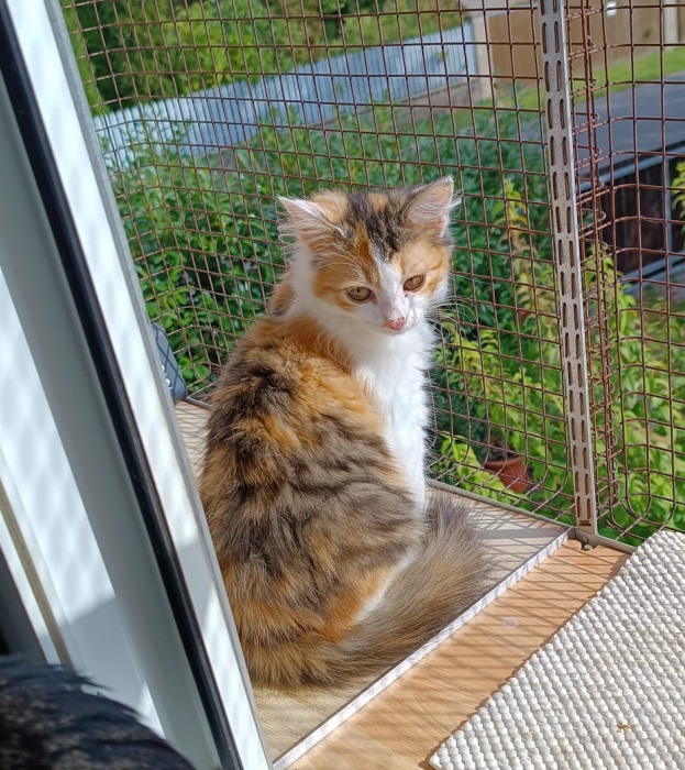 Tříbarevná Lucinka je 4měsíční kočičí slečna. Před lidmi se stále trochu schovává, ale když jí člověk uloví, stulí se do náruče a vrní. S kočkami žádný problém nemá. Vhodná je pouze do bytu a noví majitelé musí počítat s tím, že chvíli potrvá, než si v novém domově zvykne. Lucinka je očkovaná, odčervená. Můžete ji mít za příspěvek na péči. Kontakt: Jana Vnuková, mob. 603 569 747