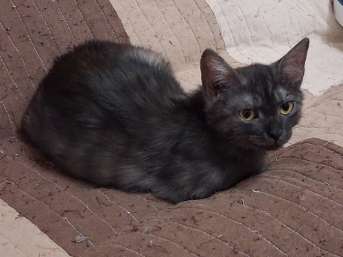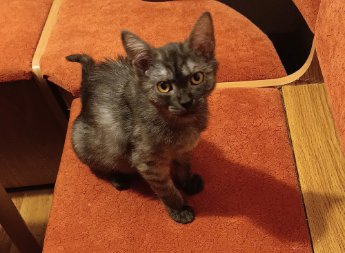 Cassie je asi 4,5 měsíce staré kotě. Je to takový dráček schovaný v kočičím těle. Hravá, zvídavá, s kočičími kamarády naprosto v pohodě. Bohužel k lidem si úplně cestu ještě nenašla. Všude je sice sleduje, pozoruje, co člověk dělá, chodí za ním, z ruky si vezme dobrůtku, ale jakmile jí člověk chce chytit, utíká. Bude to chtít dát jí ještě trochu času. Je očkovaná, do bytu a dobrý by byl i kočičí kamarád. Kontakt: Jana Vnuková mob. 603 569 747